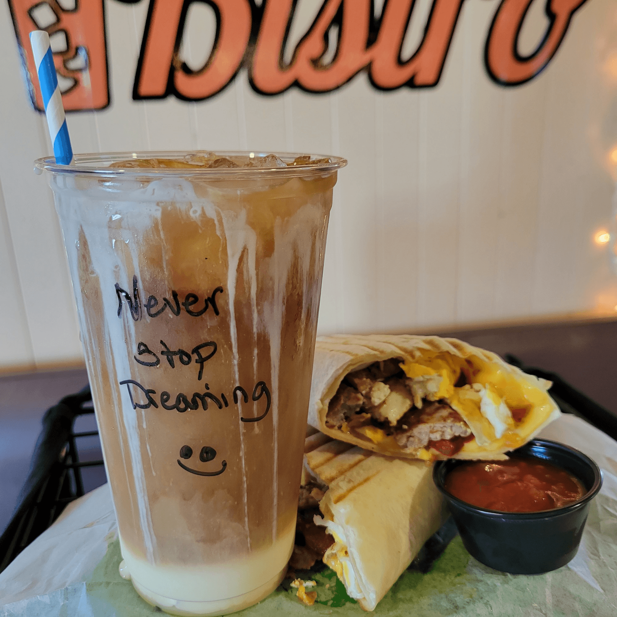 I came here to study on the weekend. Almost didn't want to review to keep it on the DL. Great drinks from Boba tea to Nitro brew coffee to smoothie bowls. Free WiFi. Food too, and drive-thru .